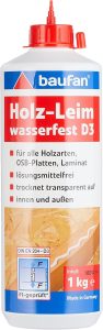 Baufan Holzleim D3, wasserfest & für alle handelsüblichen Holzarten, 1 kg, transparent