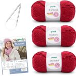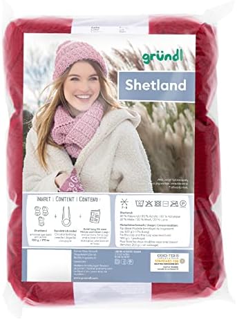 **Produktbeschreibung für Gründl Strickset 3 x 100 g Shetland Wolle Strickgarn + Nadel 7 – 8 + Anleitung zum selber Stricken, 30 x 20 x 8 cm, rot**